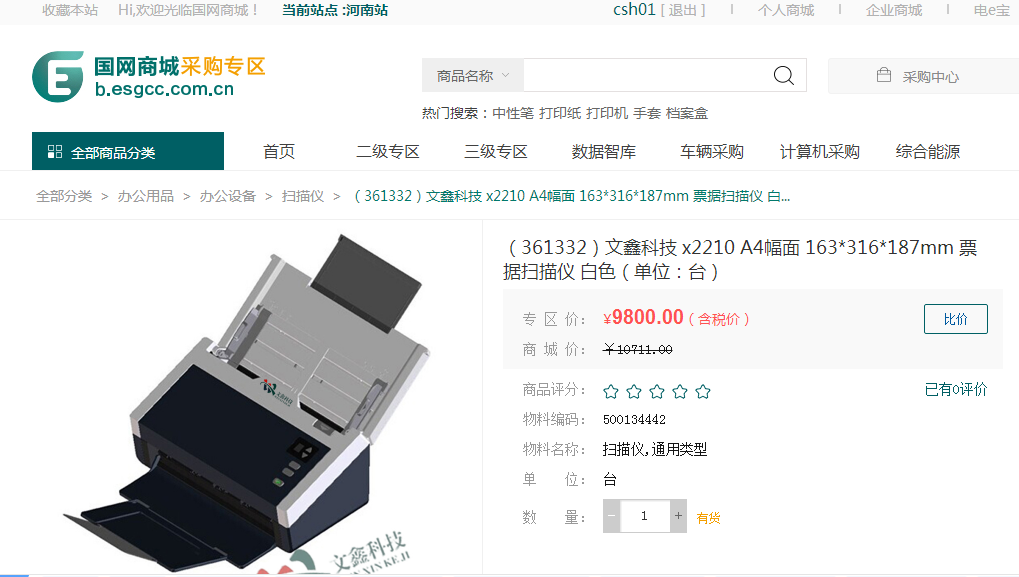 第二步:選擇所選物料的具體分類+物產電商一級專區(店鋪)+文鑫科技(品牌)